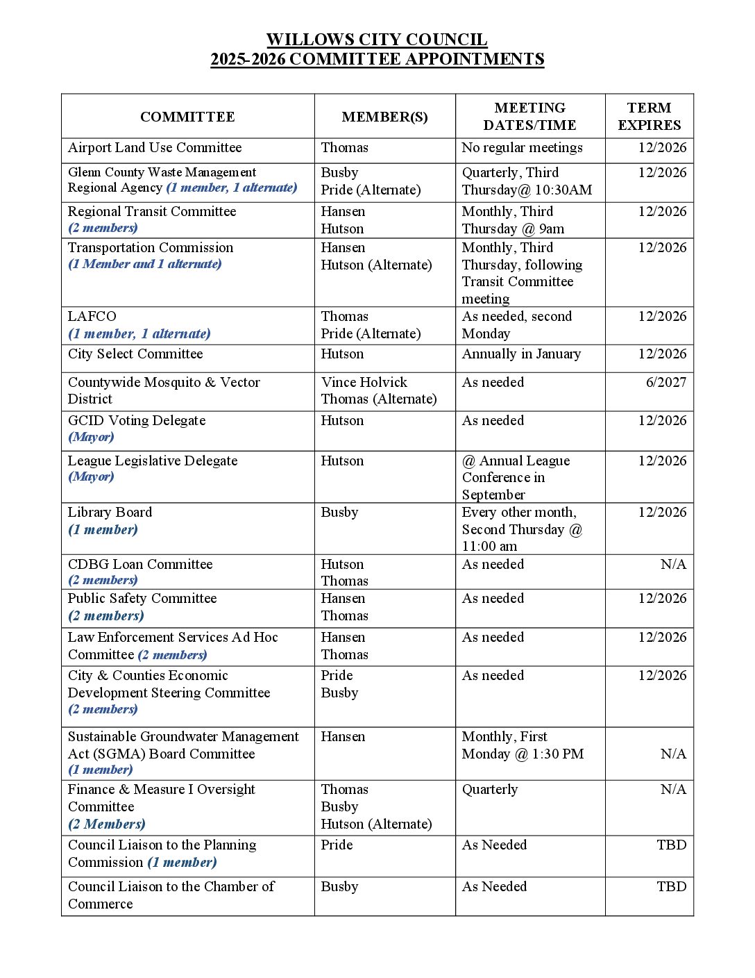 | City Council 2025 Committee Appointments | City Council | October 1, 2025 | city-council | ||