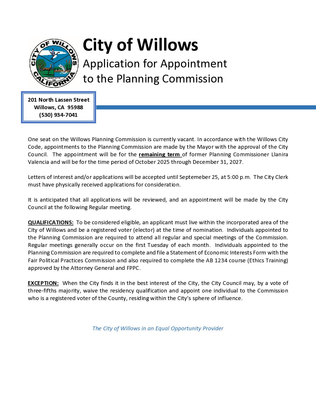 | Planning Commission Vacancy with Application 2025 | Planning Commission | October 8, 2025 | planning-commission | ||