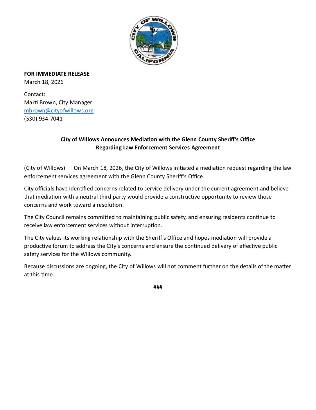 | Press Release – Mediation Law Enforcement Services | Press Releases | April 8, 2026 | press-releases | ||