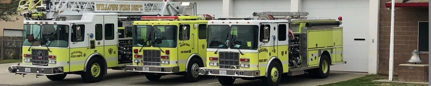 The Fire Department is responsible for responding to emergency calls (9-1-1) for the City of Willows and the Willows Rural Fire Protection District, as well as providing mutual aid to neighboring fire jurisdictions in Glenn County, Hazardous Material Team Response, fire prevention (e.g., inspections, weed abatement, public education), training, and administration (e.g., purchasing, regional coordination, budgeting, grant preparation and reporting).
